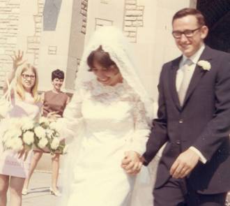 God blessed us with perfect weather, a balmy sunny day ( June 6, 1970 ) at the tiny Green Chapel at the University of Missouri in Columbia . I felt beautiful in my wedding dress, and we were happy that it was a small traditional wedding with close friends and family. My heart filled with joy as the heavenly trumpet sounds filled the chapel and I walked down the aisle.