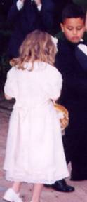 Then we were ready. As Brian and I took our places Liz¹s cousin, Jake, played a cello prelude. Then Grandpa Dave walked down the aisle with her. As Liz and Bryan stood there, their blond hair glowing in the sunlight, they were a vision of white and gold. They turned to face one another to say their vows. Brian took both Liz¹s hands in his. They gazed at one another as if they¹d forgotten the rest of us were there.