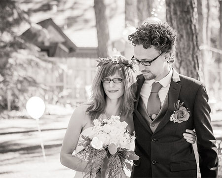 We wrote our own vows with your assistance. We were able to express our spirituality through a reverence and connectedness with nature—a bond that is as important to us now as it was then, and that we share with our two children Annie and William. We really appreciated your help, humor and patience! Getting married is such a paradoxical event: one has to deal with so many unimportant details to get to the really simple and yet profound commitment. I remember feeling very uptight and hypocritical about material aspects of the wedding such as the wedding showers (looking back, though, I may have had a good reason, as I ended up having three wedding showers!) Now I realize, with the hope that it is a one-time deal, a wedding certainly deserves some hoopla, and that the material trappings are simply gestures of good wishes.