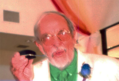 Because his pictures speak so well for themselves, I'll end with a single reference to Bill's movie shots of Sam at the reception, near the fruit bowls. Bill shows Sam thoughtfully, solemnly eating fruit. Then the camera leaves him, captures other human interest scenes & exchanges, finally returns to Sam. There he is, face as expressionless as Buster Keaton's, methodically & efficiently disposing of fruit. Again Bill's camera leaves him, again returns; & by now the movie watchers are howling.